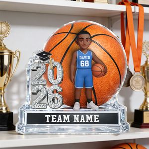 Celebrate a graduation milestone and years of dedication on the court with a keepsake that truly stands out. This personalized acrylic block plaque instantly captures attention with its bold basketball-themed design, builds interest through its sleek 2D flat artwork and crystal-clear acrylic finish, and creates lasting pride by showcasing the graduate’s name, team, and Class of 2026. Designed to be proudly displayed, it’s a meaningful way to honor hard work, teamwork, and achievement—making it the perfect graduation gift for a son or daughter.