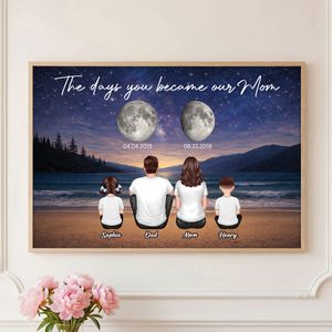 Turn life’s most meaningful moments into a breathtaking piece of art with this personalized moon phase poster. Featuring the exact moon phases from the days she became a mom or grandma, along with custom names and dates, this design captures memories that are written in the stars. Set against a serene night sky and peaceful landscape, it’s a deeply emotional tribute to the milestones that changed everything. Perfect for Mother’s Day, this unique keepsake beautifully honors her journey of love, motherhood, and family.